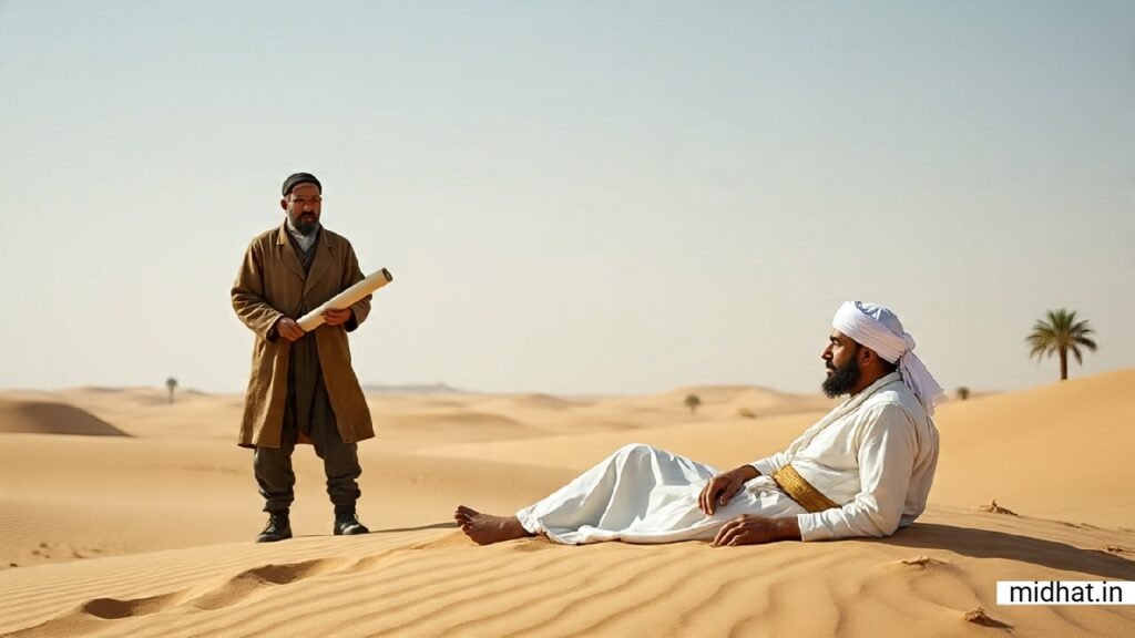 दूत यह देखकर चौंक गया! वह सोचने लगा – सारी दुनिया के बड़े-बड़े राजा जिनके नाम से लोग काँपते हैं, वो तो सोने-चाँदी के महलों में रहते हैं, और यह व्यक्ति जो लाखों मुसलमानों का नेता है, इतनी सादगी में कैसे रह रहा है?