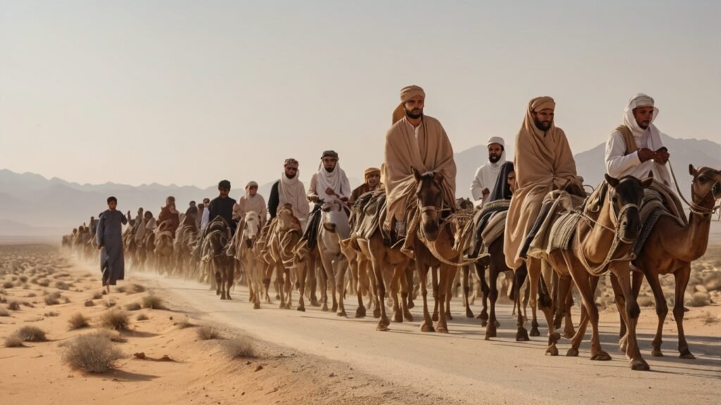 उन्होंने कहा — हम शाम (सीरिया) के रहने वाले हैं, अकाल के कारण परेशान हैं और अनाज लेने आए हैं।