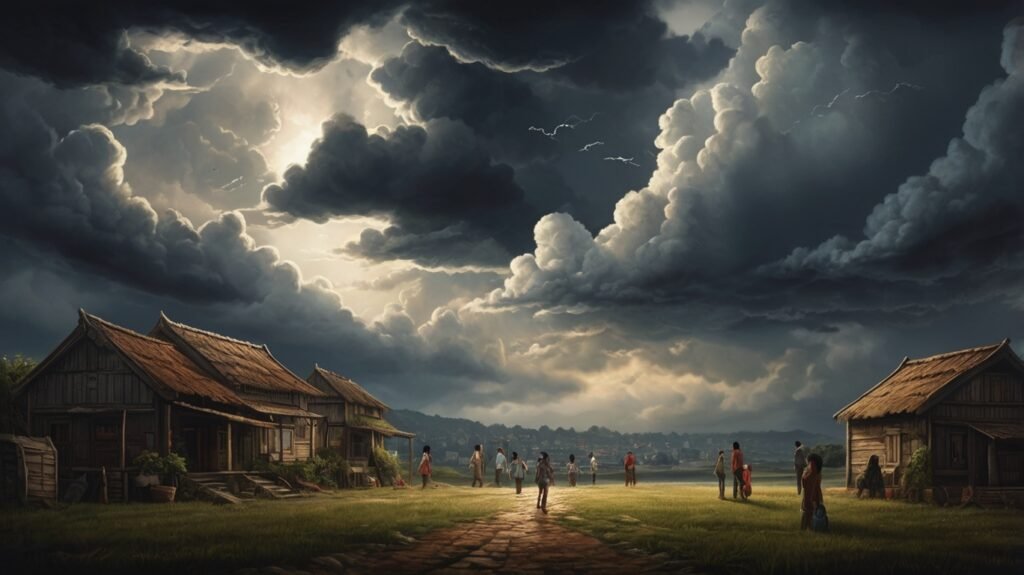 एक दिन क़ौम-ए-आद ने आसमान पर काले बादल देखे। वे खुश हो गए कि शायद अब बारिश होगी और उनकी ज़रूरत पूरी होगी। मगर यह उनकी ग़लतफहमी थी। उस काले बादल में से एक तेज़ और सख़्त आंधी आई।